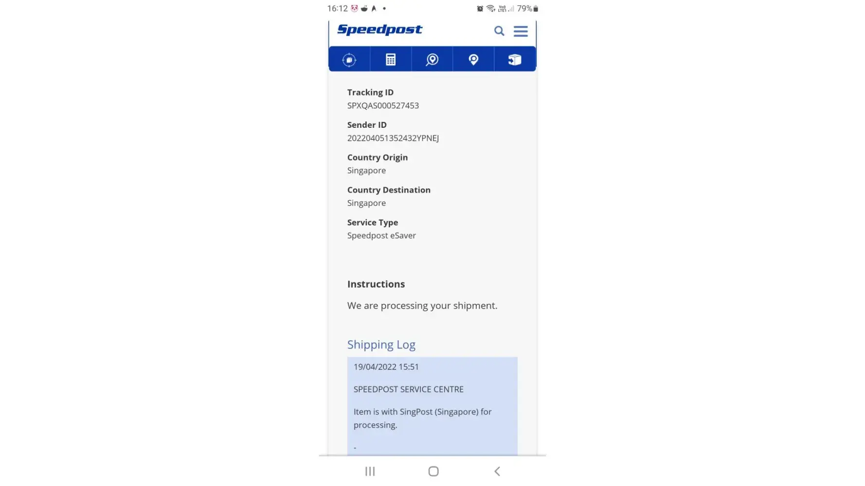 Tracked item: SPXQAS000527453 (Speedpost)