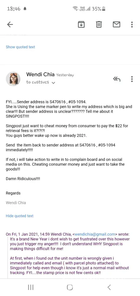 Last but not least, I also learned online I am not the only facing this kind of issue. Hope Singpost/Speedpost can help resolve this issue the soonest possible.