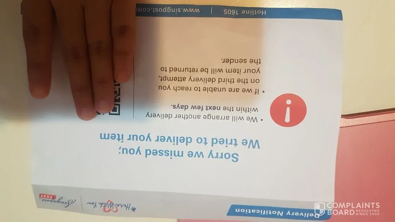 Receiving packages delivered by SingPost is the absolute worst experience ever, for anyone who don't have people waiting at home. No heads up on delivery time frames, incomplete delivery notices without tracking numbers, and re-delivery lead times of 3-5 days is absolutely ridiculous. SingPost delivery, delivers on the worst customer experience ever.