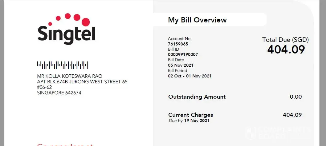 we waited for one over week for Singtel to respond on this matter, and they have sat on this matter, of course again it's the customer's fault because the 76 year old customer did not complain, but their children did.