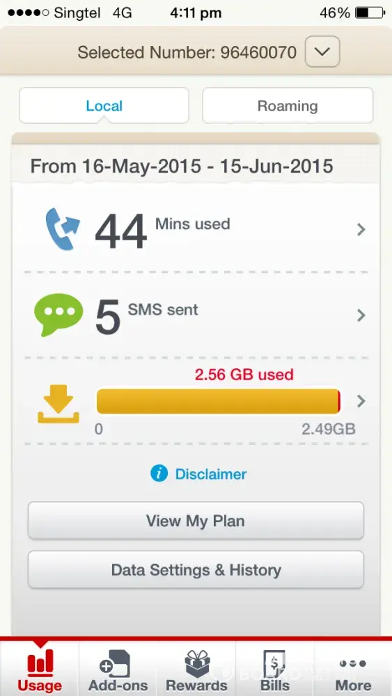 I called up 1688 this afternoon, the CS suggestion is to turn of mobile cellular whenever there is WIFI. That's not the point ! I am using like usual since then and only this month May and only 3 day used up 2.5 GB ? In fact singtel CS answer is not solving my problems ! why this only happened in May 2015 when my usual I never need to turn off mobile data when wifi presents was done in the past will not give me this shocking bill and usage ?