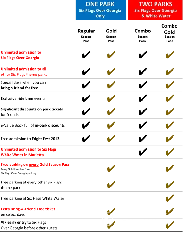 Six Flags Over Georgia says on their website that Fright Fest is included in your season pass purchase, What they failed to tell you is that you may go during Fright Fest but have to pay an extra $20.00 per person if you want to experience any of the Main Fright Fest attractions. I have always purchased season passes while living in other states and have never encountered such blatant false advertisement. We have always been able to enjoy the full Fright Fest experience at other Six Flags Parks with our Season Passes. Do not be fooled, they lie and have no problem misleading you into buying passes. I will not be purchasing tickets again to this park