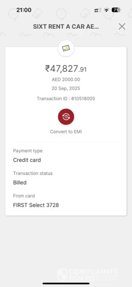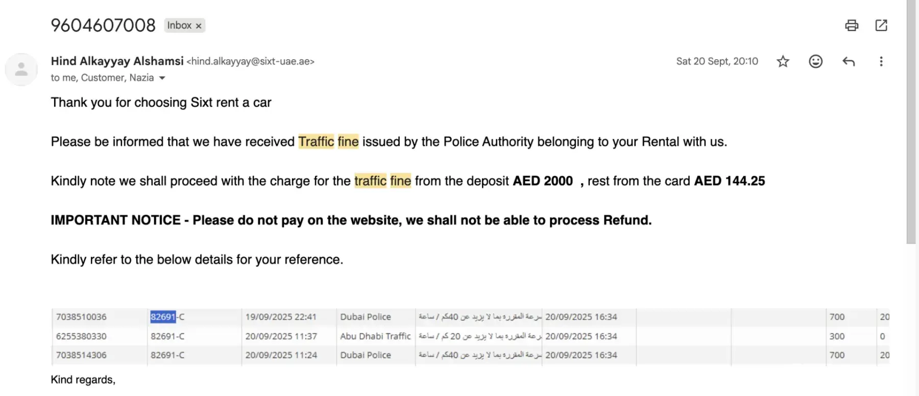 I had a terrible experience with Sixt Rent a Car. Despite returning the vehicle in perfect condition, my 2000 AED caution deposit was never refunded, even after several weeks/months of repeated follow-ups. Their customer service has provided no valid explanation or resolution, only generic replies. They now claim the 2000 AED was deducted toward traffic...
