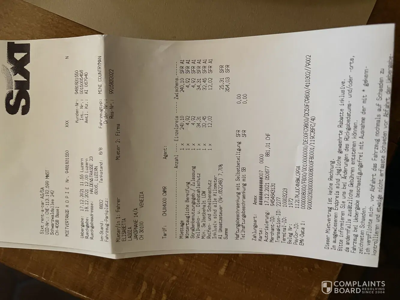 From 16 Dec 2021 through 15 Jan 2022 I rented a vehicle from Sixt in Ostersund/Sweden. My customer number was 9815536, reservation No [protected], Registration UHZ 17X, Internal No [protected].