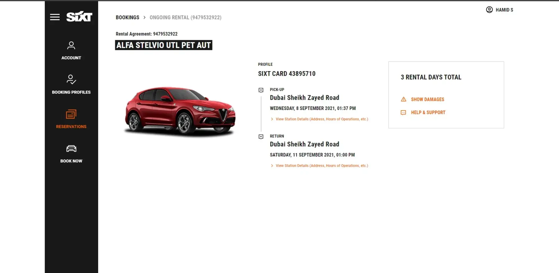 Rental agreement [protected] (made through USA SIXT site)