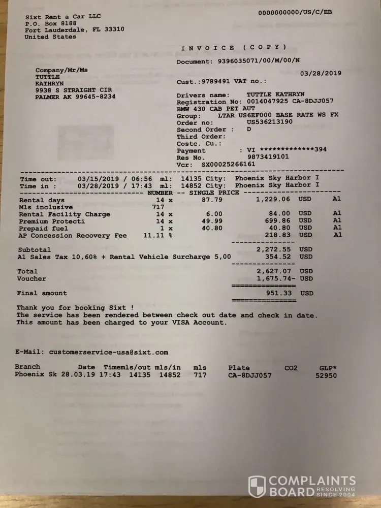 Sixt Complaints Page 15 of 23