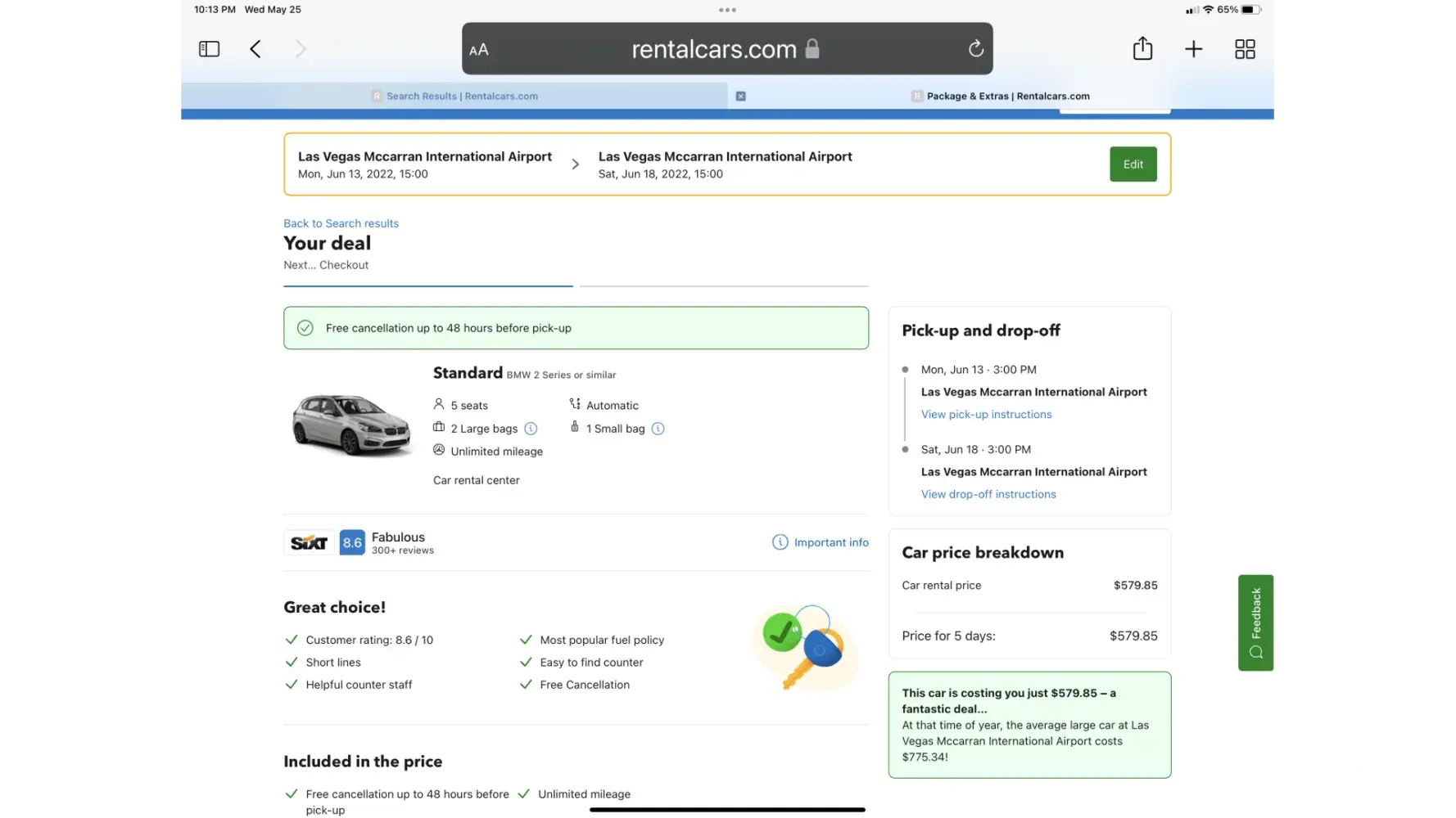 The bill for the smaller car came to 400 EUR - which is not bad since I increased the rental for a few extra days - no issues with this.