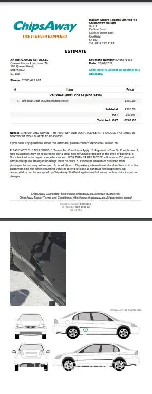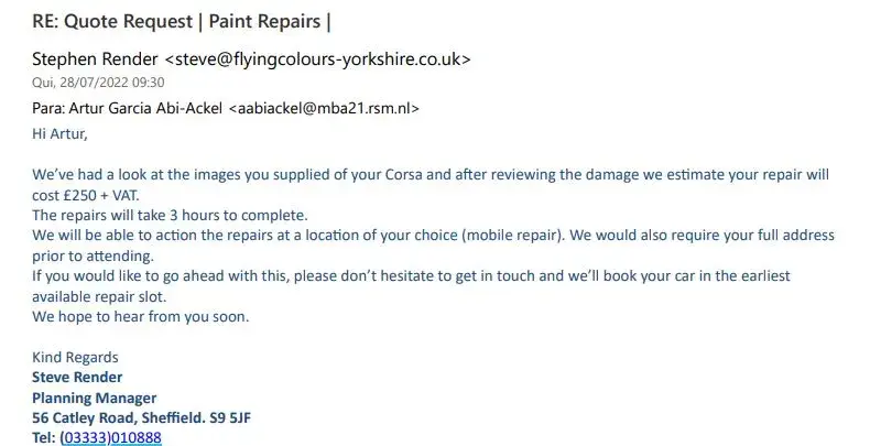 I would also like to mention that on the day of delivery, the gentleman who received the amount stressed to us that what he saw there of damage that he had not seen before on the vehicle was just the scratch on the wheel and that there was nothing else to point out, which we also do not agree because neither of us, the two conductors, Hermenegildo Bohema and Fernanda Soares, were guilty of this damage!