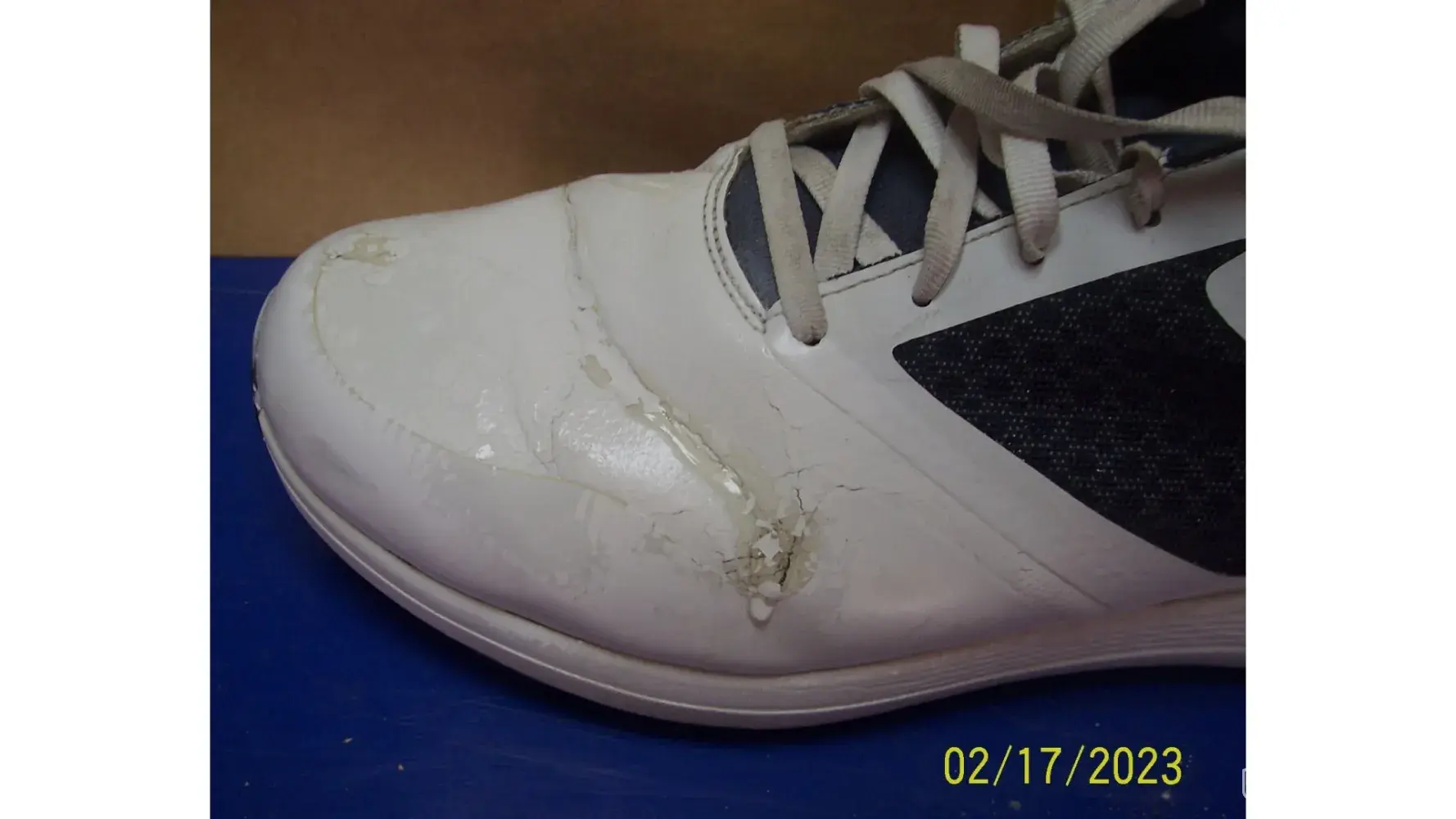 Desired outcome: replqcement of the shoes of a comparable value in size 12 ew. color is of little importance though the shoes in question are white. i can forward pictures if required or rturn them if postage paid is provided