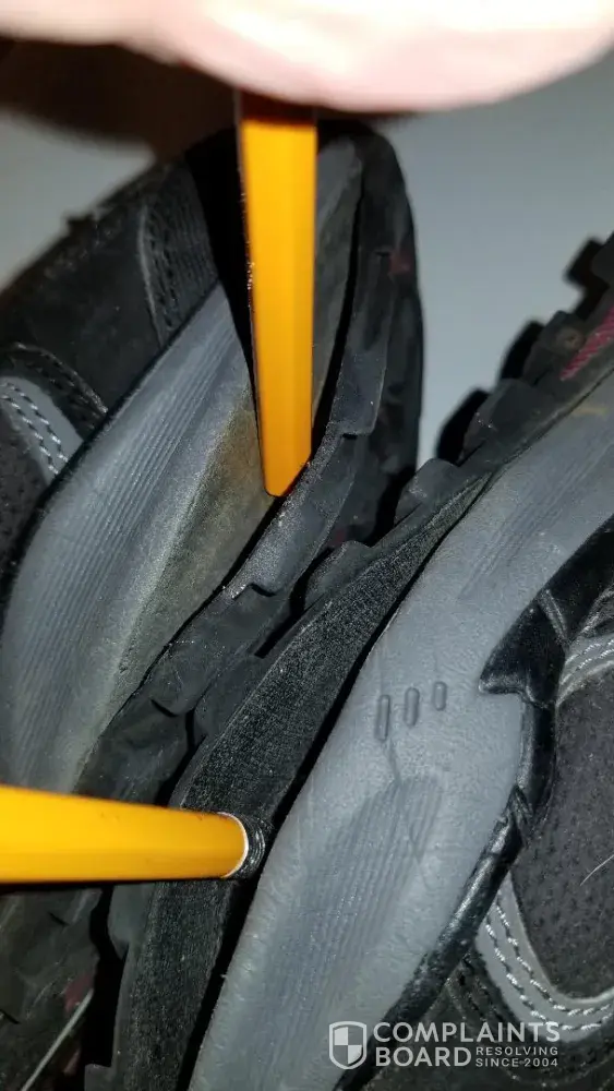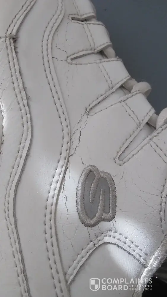 All I wanted was to have the shoes replaced. See attached photos of the poor quality of material and workmanship.