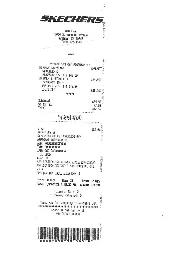 I am a customer for years. I bought 2 pair of walking shoes on 03/19/2021.