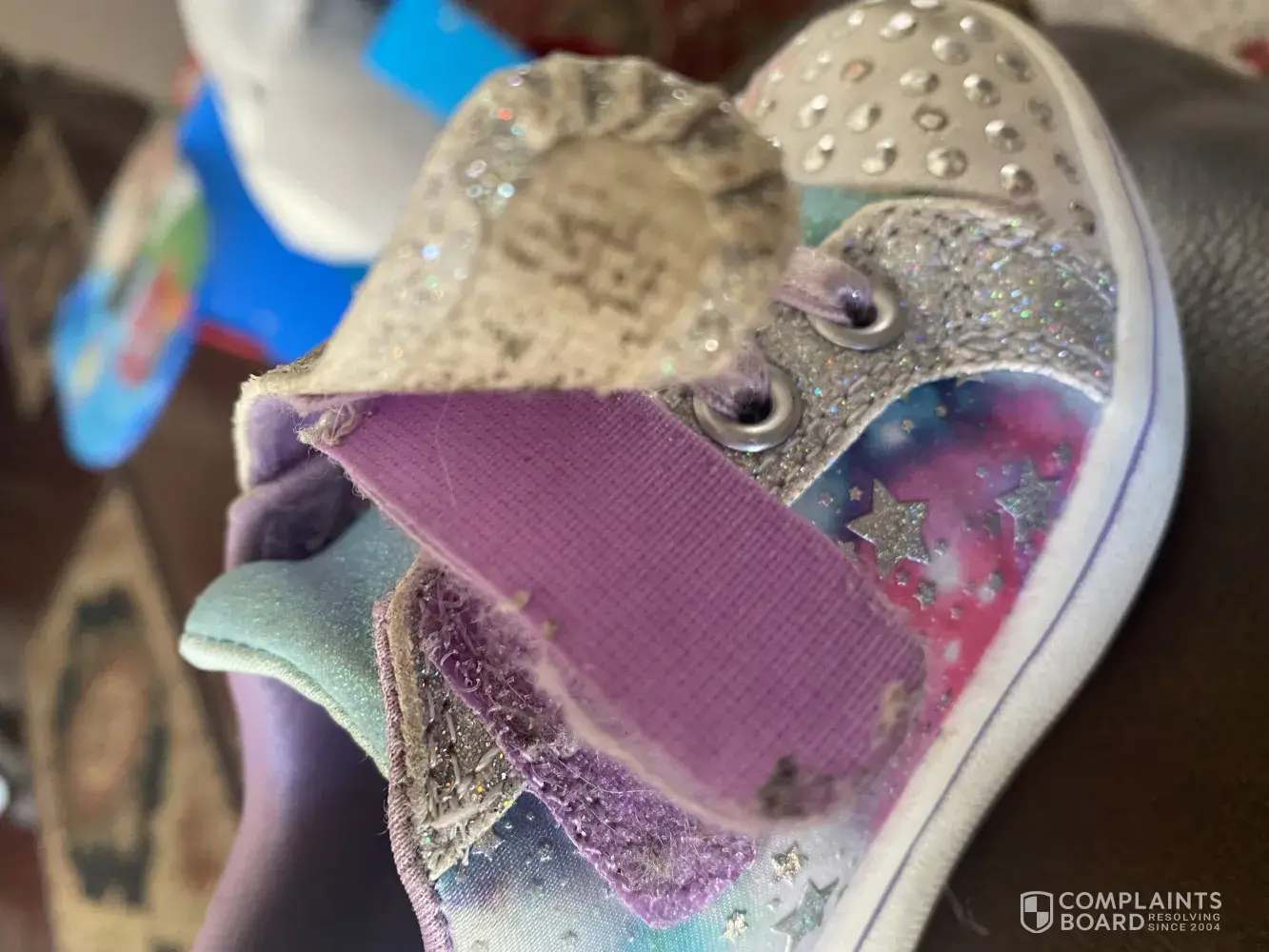 We bought these for my granddaughter 3 weeks ago for $54. Size 6 toddler. This is the second pair of this type. Both pairs had the Velcro strap separate soon after purchase. The glitter is also coming off. She does not wear these shoes daily but they look like they are years old. She does not go outside with them at all. I just think for that money, this should not be happening. Thank you.