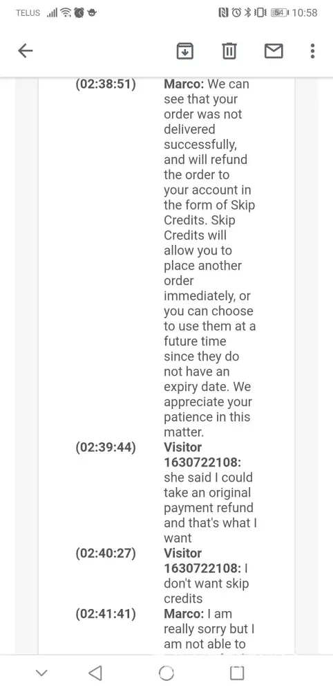I got literally inedible food; it was as hard as a rock. I spent 30 minutes to get 50% of the wrong order refunded. I still have to order food for my partner now who didn't eat because of the bad food. I get it's complicated, but wtf I have to throw the dice and hope it'll be good this time now. I have under $5 of skip credits to order another $20 worth of a meal. I'm absolutely irate right now that I've supported you guys for so long and can't get more than a "go away" response.