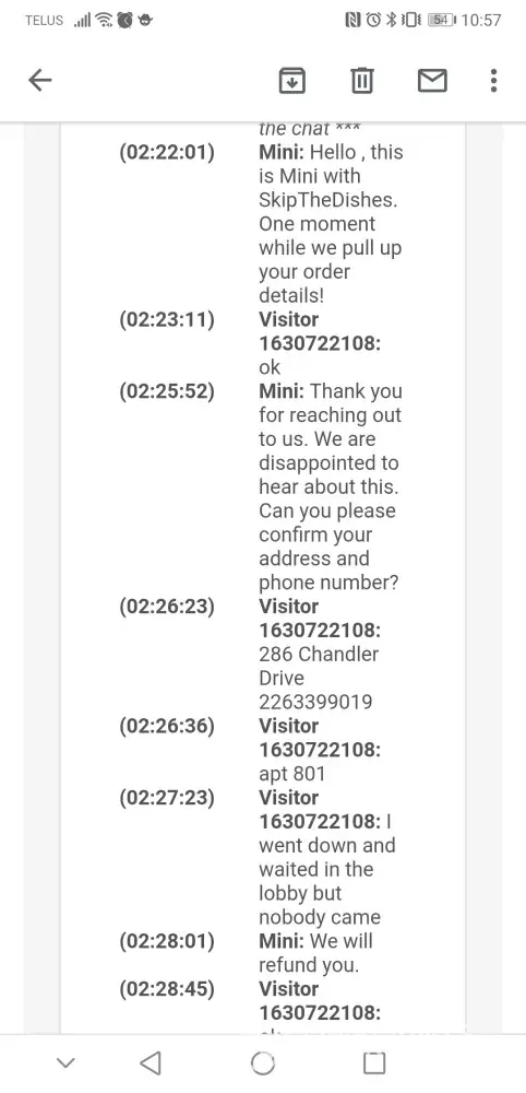 What's upsetting is the lack of transparency. There are no repercussions for the courier at all. It's a poorly designed system and the Skip the Dishes reps must be able to get in contact with the couriers at all times.