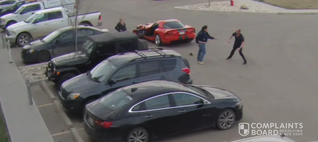 Skip came for a delivery to the building, he drove in with another car got out ans started screaming at the guy in the car for about 5 mins. He then went and made his delivery to suite 1419 came back down and went to the car and started punching the occupant the then both started fighting in the parking lot.