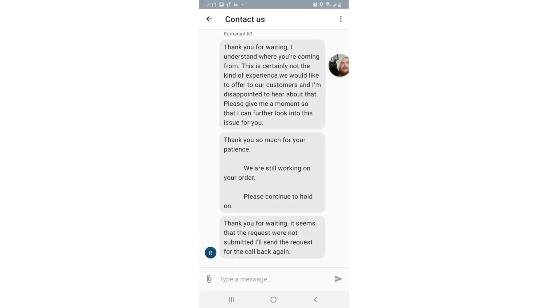 About a month ago I sent a message about the chicken breasts that I ordered from church’s chicken (8) and how unhappy I was as the breasts were not breasts. Do you not respond to complaints about the quality of food received? My order was on September 15, 2022 and it sent a message right away and have not heard a thing.