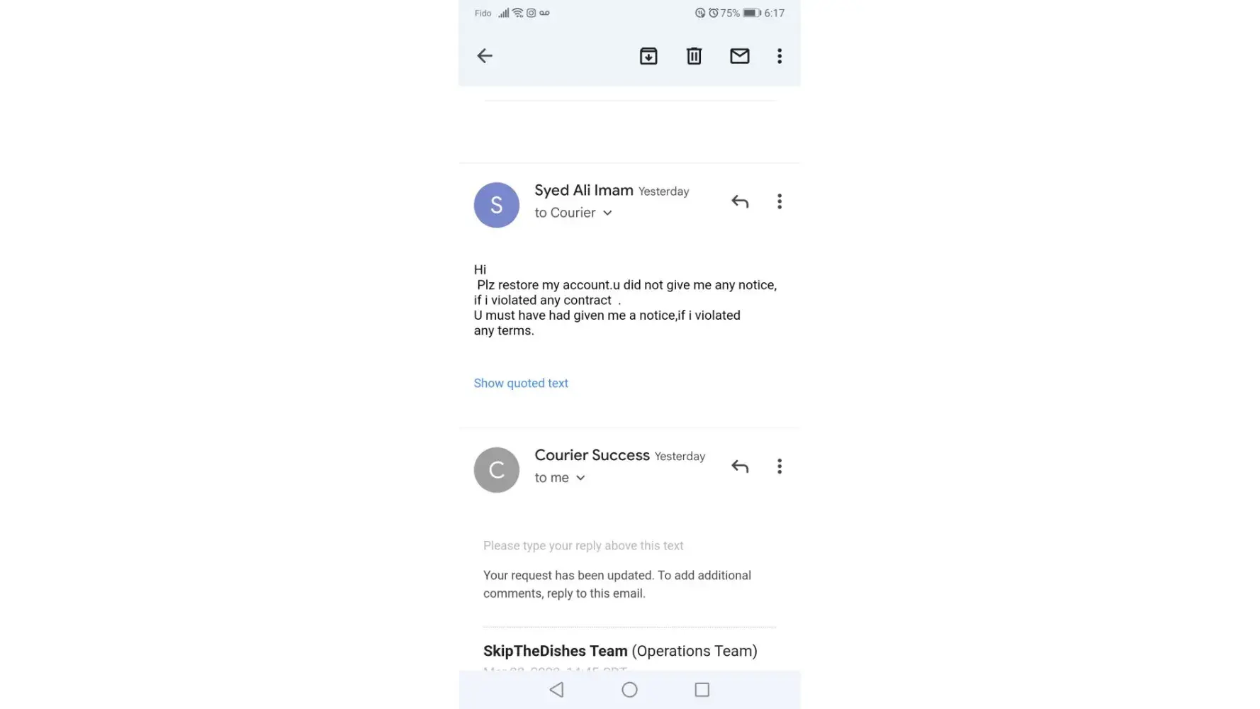 Order from Skip The Dishes at least 3 times a week. This time they delivered to the wrong address and then refused to give a refund and then cut me off the chat service.