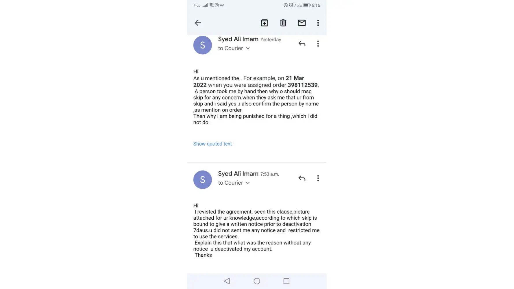 As per contract ,i shall be given a notice of 7days prior to account revoked. I try to email them but no reply from skip