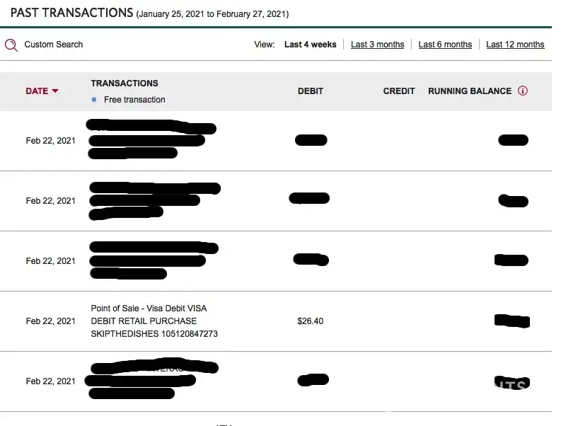 I have had numerous negative experiences with Skip the Dishes. This most recent one however will be my last. Skip the Dishes took money out of my bank account on February 22, 2021. This was after I cancelled an order on February 21, 2021. The afternoon of February 21 I had to use the "cancel order" feature on the Skip website. The website provided feedback informing me that my order had successfully been canceled. February 22 I checked my account balance online and found a debit from Skip the Dishes. It is dated February 22, 2021. I logged onto my Skip the Dishes account to view the order history. That order is listed as canceled. I initiated a chat session on Skip the Dishes' website. I have an emailed transcript of that conversation. I also contacted the fraud department of my bank and was talking live with a representative during much of the chat session. During that chat session I was given false information by the skip representative. I was also expected to accept skip credits instead of a refund. I insisted on a refund.