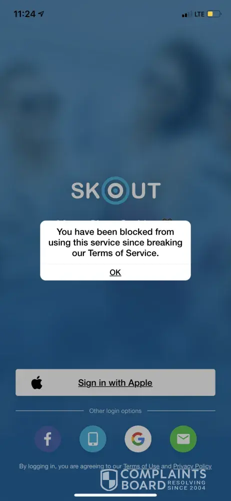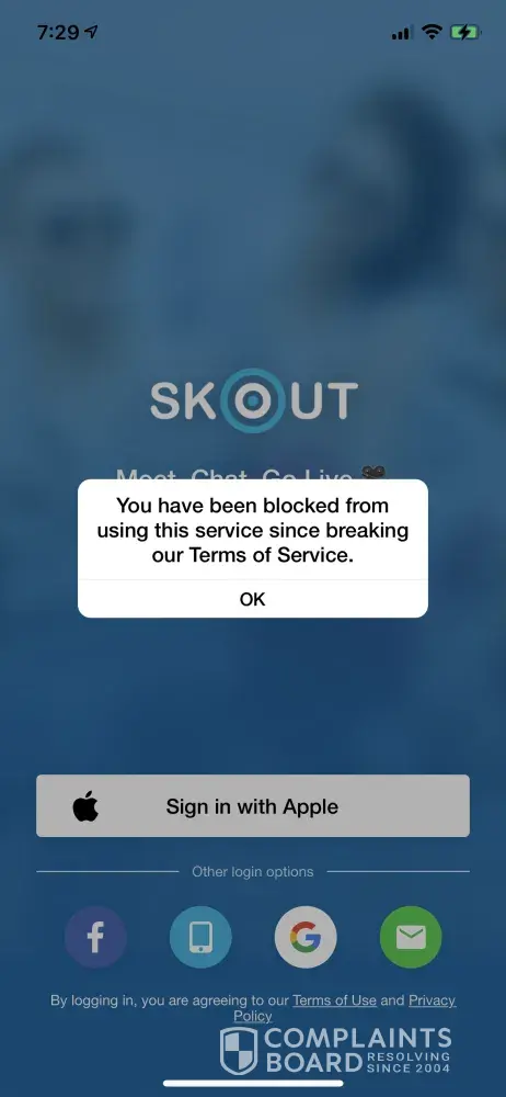 Create new account but SKOUT customer service said I am blocked from SKOUT team because of terms and conditions