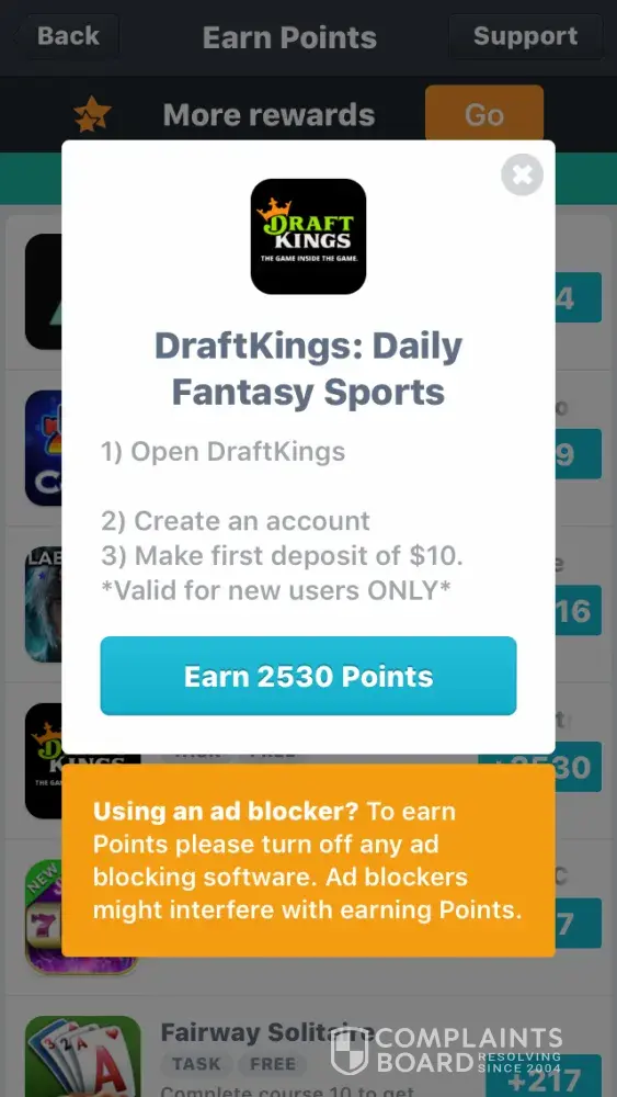 I just downloaded draft kings and deposited $10 in order to get the 2530 points. I am a new user. When I exited and restart the SKOUT app, i did not get that amount of points. It has happened to other apps I downloaded as well and it didn't get the points I should have. :(
