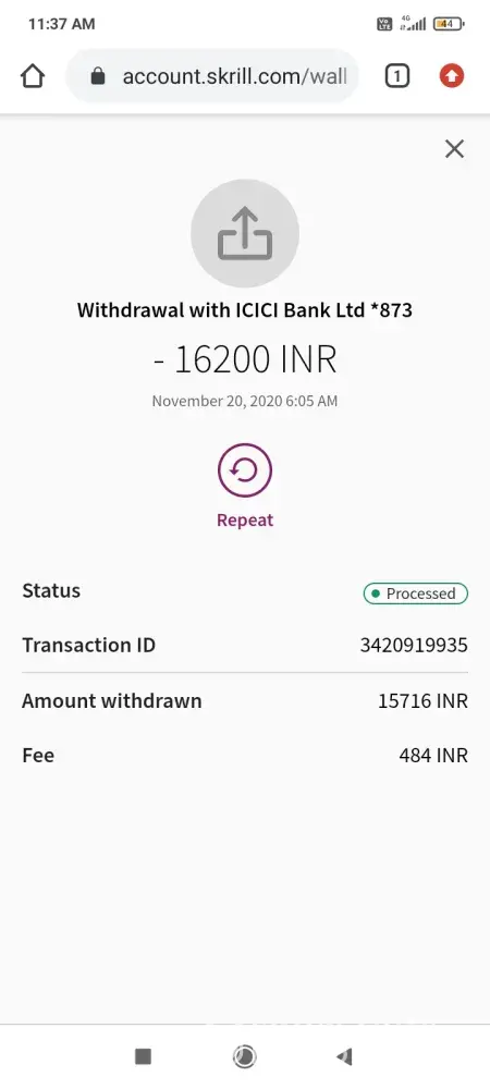 On the 12th of October 2020 I deposited R1 200 on my Skrill account, hassle free.
