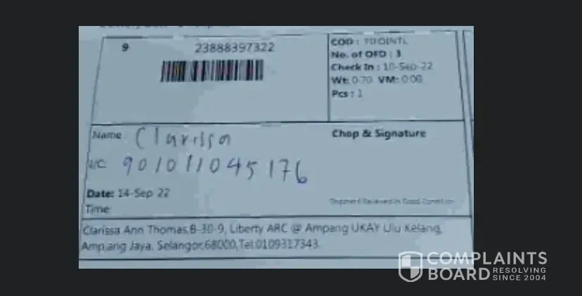 My parcel was said to be delivered on the 14th of September (KL) and I was away in KK when it was delivered. I called the delivery partner and they assured me it would be sent to the guard house of my condo. However, I just got back to KL and checked with the guard house and the parcel is not there. Upon further checking, the delivery partner apparently delivered my parcel to someone with the ic number of [protected] and failed to inform me of this or even take a picture as proof or a text. All security guards are foreign workers and dont have any ic's. Who did you give my parcel to and why would you let a stranger sign off on my parcel without checking if the ic number even matches my name?