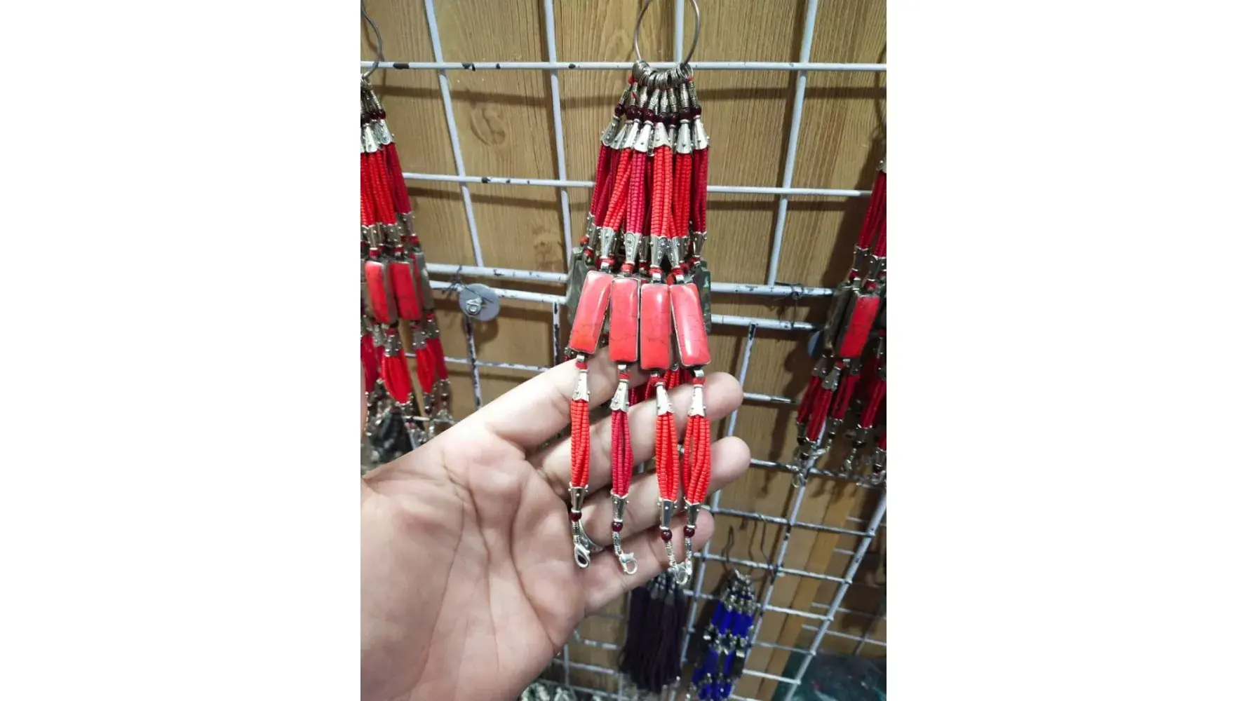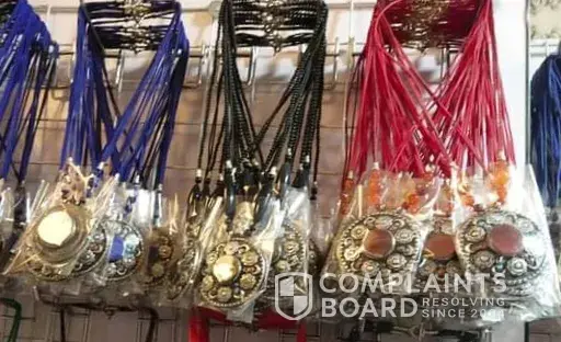 2Wooden key chains missing and 3 are damaged. 1 file is damaged, 1 red bracelet, 5 pendants and 5 fancy rings are missing.