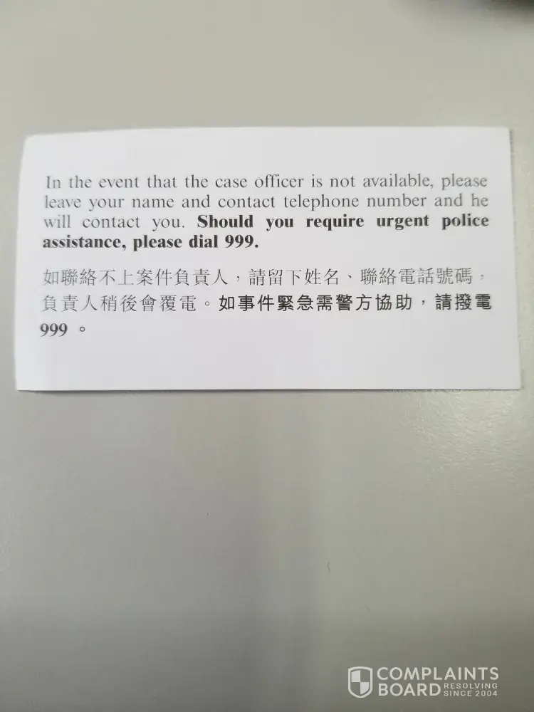 I already reported the case to Hong Kong Police last night. Report no. [protected]
