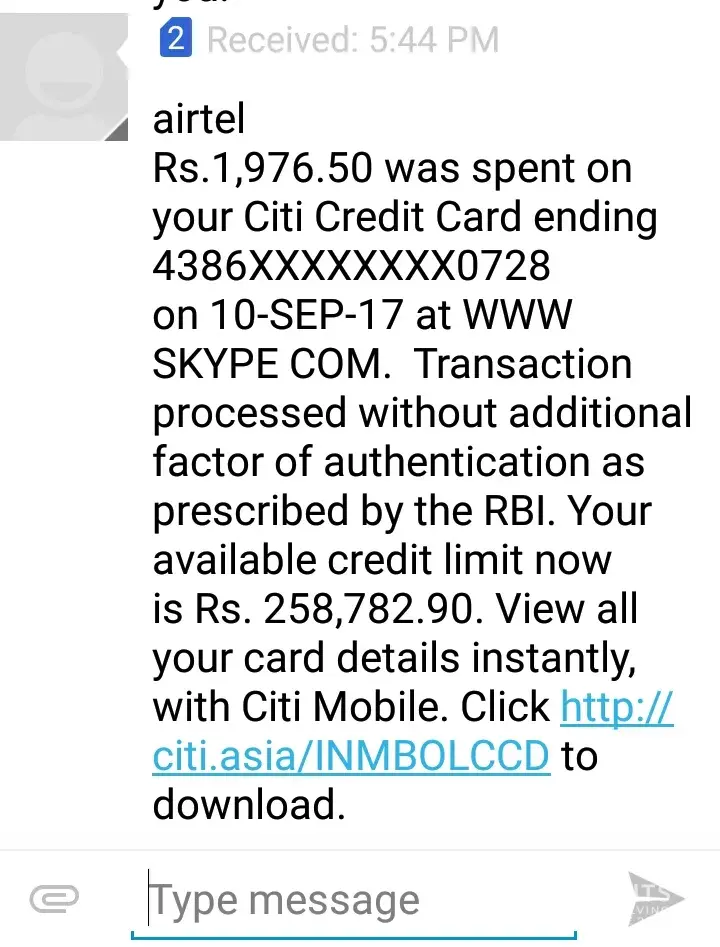 I Am Skype user with mobile number [protected]. I have not done any Skype recharge on 10/09/2017.But got SMS and email from my credit card service that I have made transaction of Rs 1976.5 on 10/09/2017 17:44. How someone can do this without OTP? I have never saved my card details. I request you to look into this matter and sort out earliest as possible.