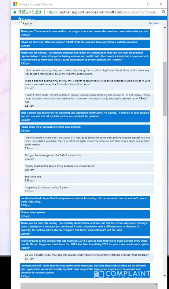 On Saturday, May 7, 2016 7:59 AM, Skype Customer Support wrote: