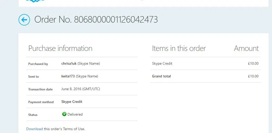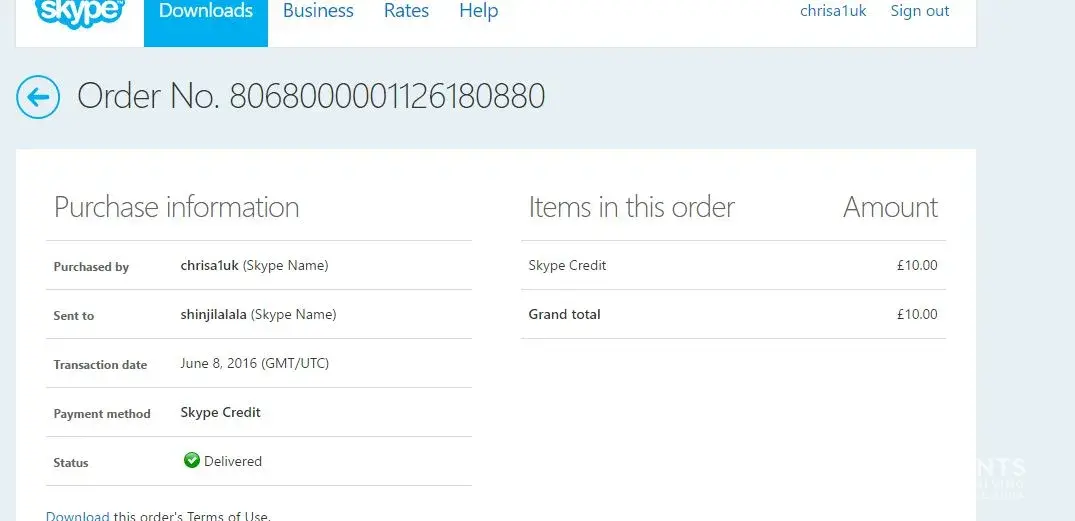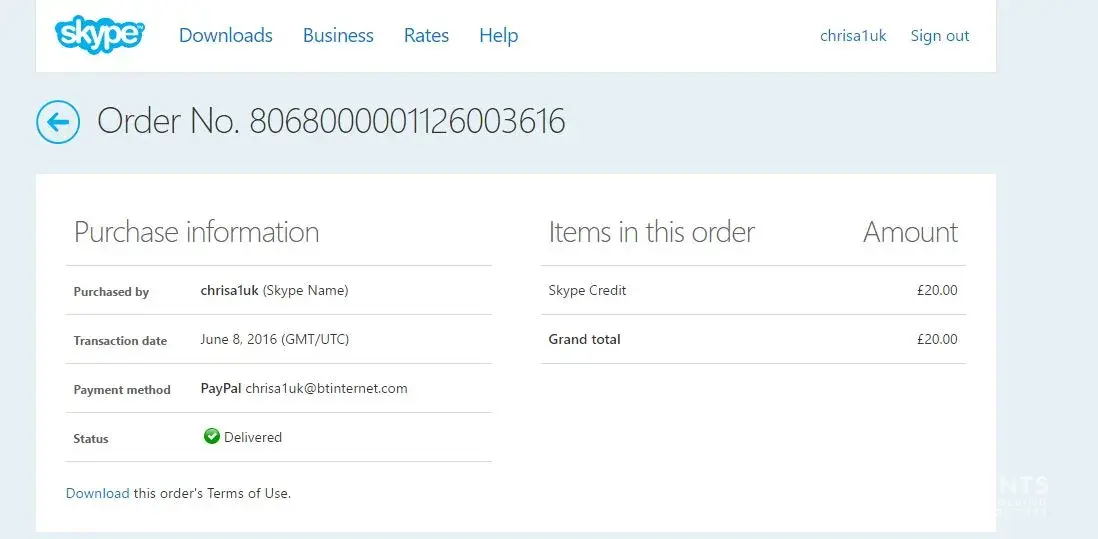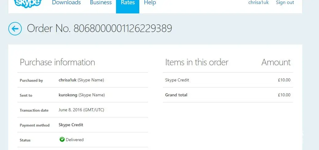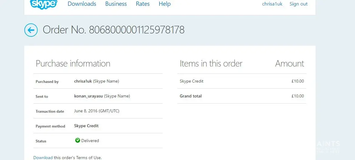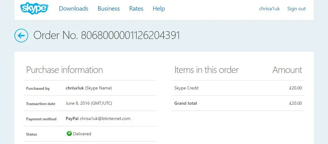 Skype - date of incident 8 June 2016. Skype name: chrisa1uk