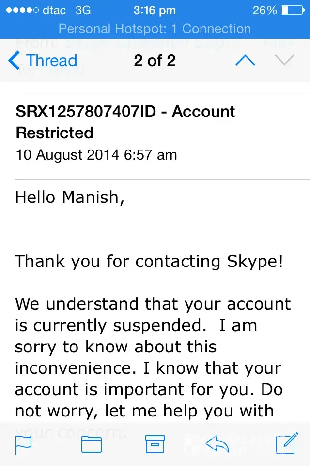I have all the emails that have received from the Skype in regards to the solving of this problem and I will be happy to post all the emails on the website for complain to let the higher management know what Skype customer service representatives are doing to keep the customers happy and what kind of customer service they are providing
