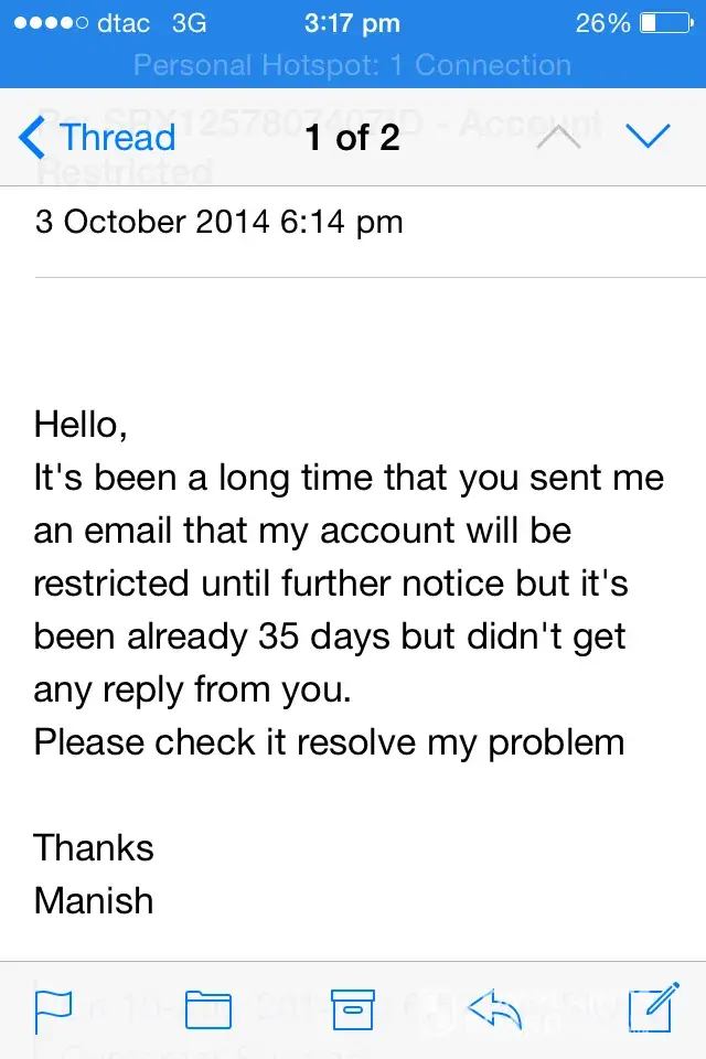 I am using Skype since 4-5 years and suddenly few months ago my account has been restricted even I don't know the reason even I didn't login my account somewhere accpet my mobile or computer. I spoke to the customer care so many times but they didn't do anything and I sent them email again few days ago than they replied me that I should make new skype account when I made new skype account and I redeemed my voucher for calling my account restricted after 2 min and can't make any call and can't even refund the money it was huge money just $2.50 voucher but its still money and facing so many problem. I am sending you all the pictures of emails conversations and my both account pictures which I have and both have been restricted.