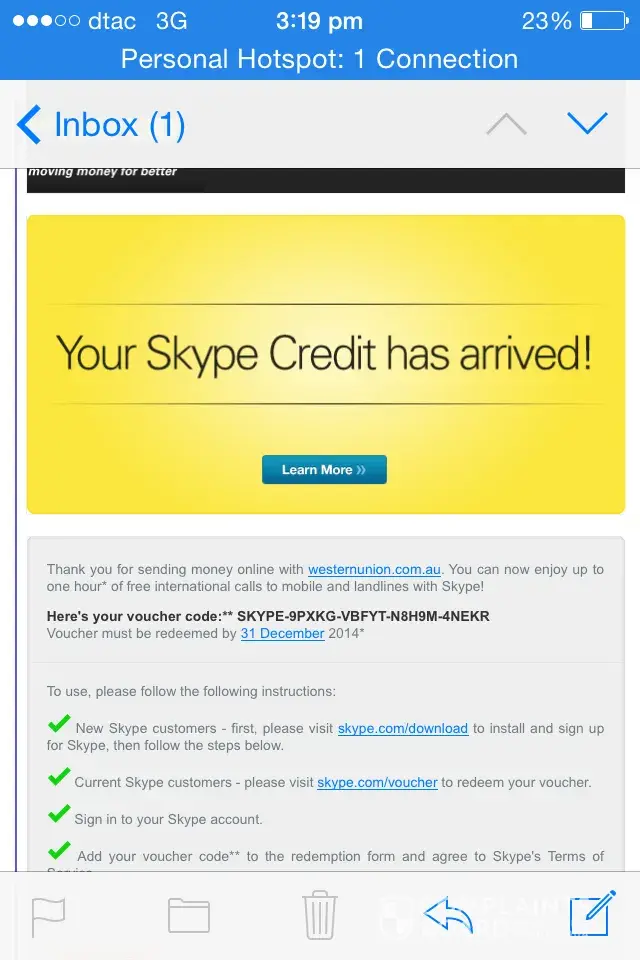 Anyway, I'm not going to get my money back and therefore I would like to make sure that consumers do not fall into the same trap. Skype is a scam and don't deserve your business. Take it elsewhere there's lots of other options out there. I am making sure I broadcast this news to everyone on the internet. It will be $10 worth spending.