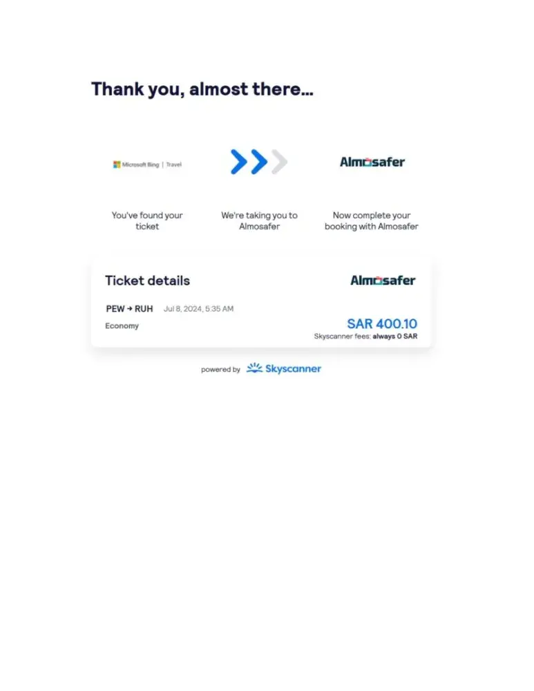 dear sir, I would like to bring in your kind notice that I am trying to confirm my booking from (PEW)Peshawar to (RUH)Riyadh king Khalid international airport on 8th of July 2024 through Skyscanner Serine Airline but when i am going to the booking section it showing as below.