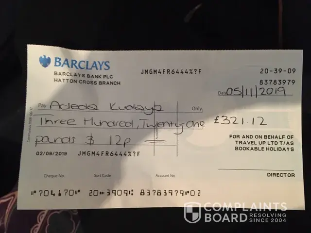 When this didn't happen, I sent an email to Travelup in October 2019 asking for the refund and as I no longer had the credit card used to buy the tickets, I sent my home address details as requested and was told that I would receive payment within 5 working days. When that did not happen, I sent an email to Travelup again, in November 2019 saying I had not been paid and was told by Travelup to check with my bank. I asked for clarification as to the refund process as I thought I would receive a cheque at my address but was again told to check with my bank!