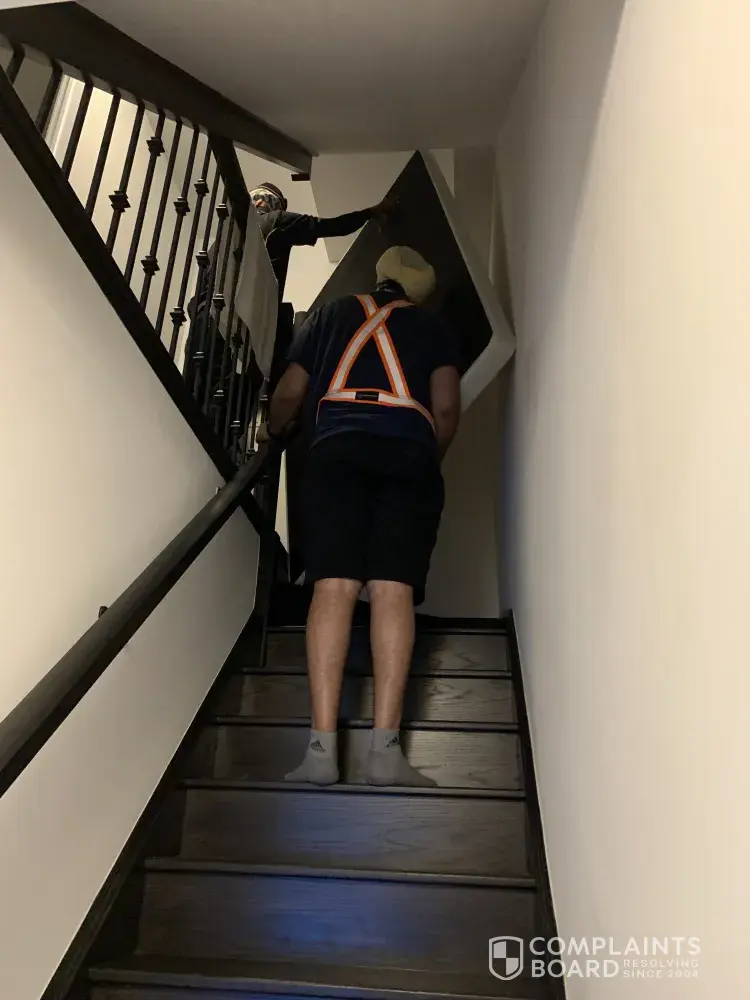 Wall damaged by sleep country deliver person on july 23.2020. The bed frame scratched my wall while that two delivery guys moved it upstairs: two holes and long scratches.Contacted customer service several times for repairing the wall but never got a solution. Bad services and bad quality.
