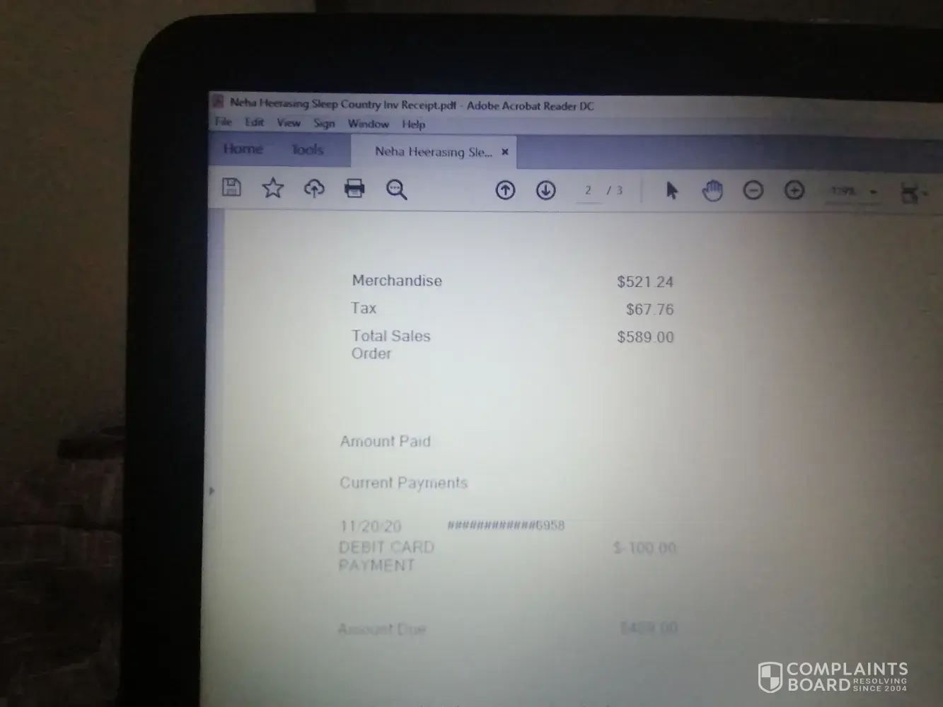 Desired outcome: At this point I want others to be aware of what they may experience with sleep country.