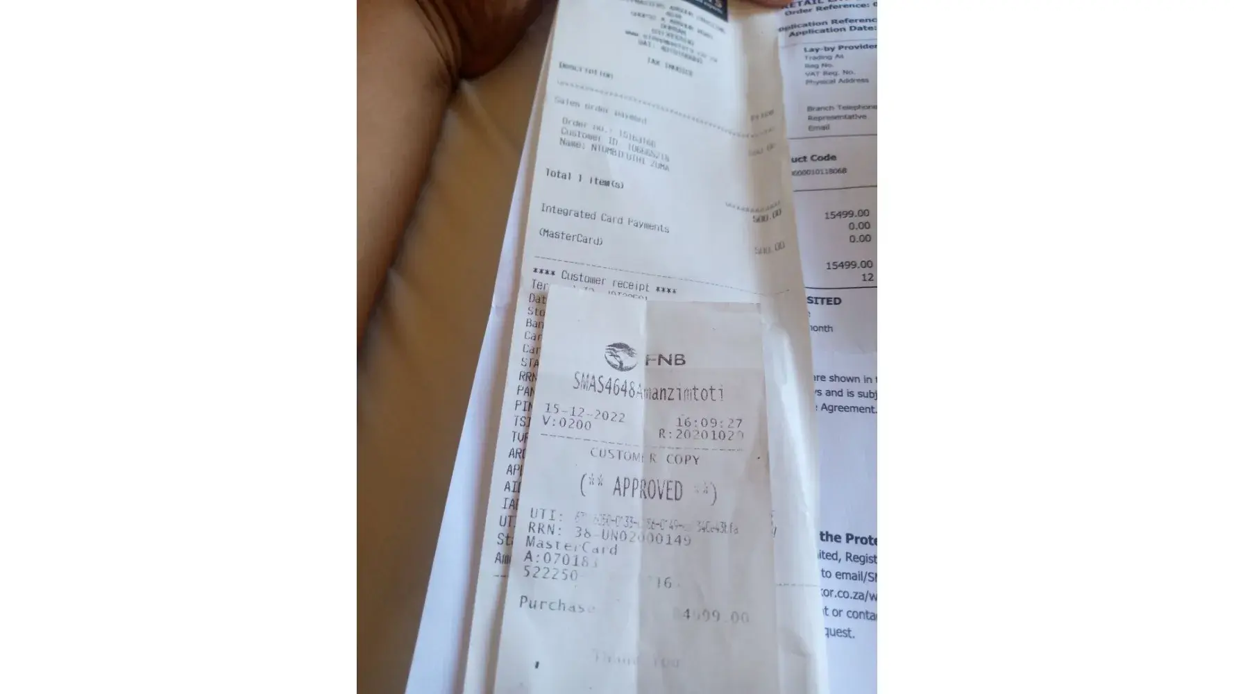 Good day, my name is Tshifhiwa Netshiozwi (Sambo) I have done a laybye cancelation at sleepmasters at hazyview on the 30 September. I was told to wait for 10 to 15 days for refund and on day 15 I called to follow up and I was told that it was rejected because I used the new ID with different surname from the previous, I sent the previous ID copy so now I want to find out if this 1 is accepted because it's been long waiting for my money