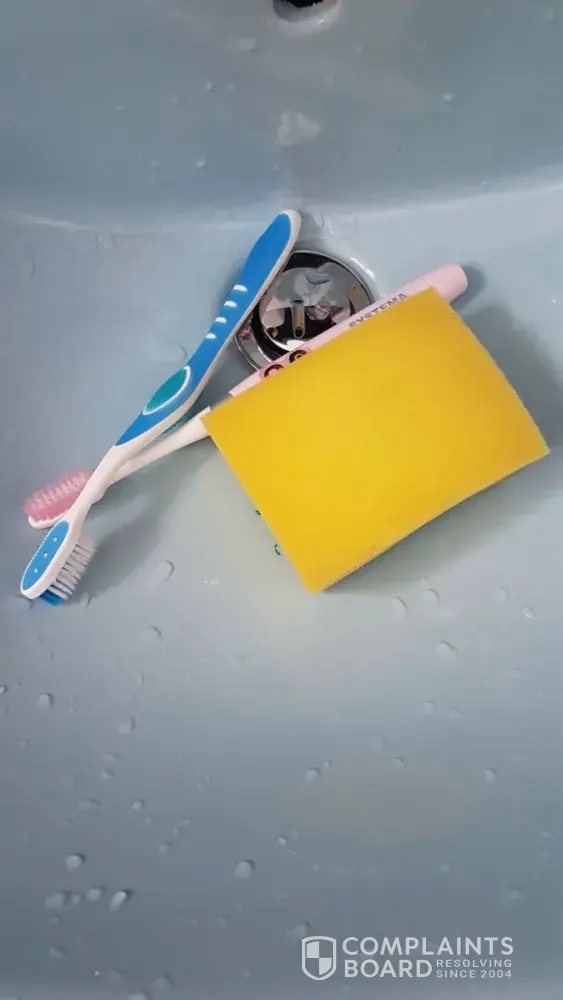 - Put me & my husband toothbrush with a soupy sponge (used for cleaning the bathroom) in a sink in bathroom. (trying to poison us) : Attached photo without soup as i forgot to take picture on the spot.