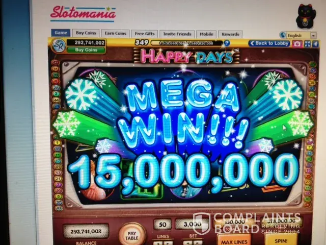 I have been a player of the slotomania slot game for over a year. Last night I had 297+ million coins. This morning I increased my winnings to 333 million. When I logged back into my account this afternoon, my balance was 32 million...slotomania took bak the chips that were obtained by legal playing. I am not the only one this has hppened to...their facebook page has dozens of the same type of complaint today. There is no way to file a complaint with the company! I am very upset that they can be allowed to do this. The site will charge you $100 for a million chips so how can they justify taking 300million chips from me? If you could please look into this matter.