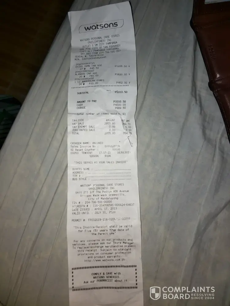 I purchased today at watson second floor sm mexico ...during my purchasing i submitted my prestige card and when i finally got my order and i have to pay they lost my prestige card, they admittedly lost and gave my card to other client...i am CZAR ADONIS V. LINGAD a prestige card holder now i lost my card at watson sm mexico pampanga second floor...please reprimand and make watson liable with their carelessness... My sales invoice is #21938 dated 16 july 2019 amounted 2955.80php... Please check this issue and help me get my card back to me.