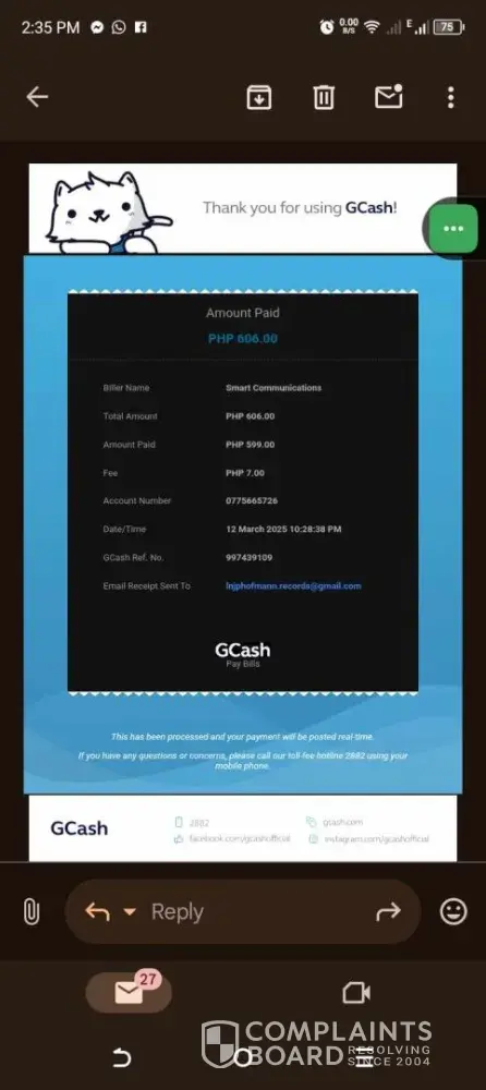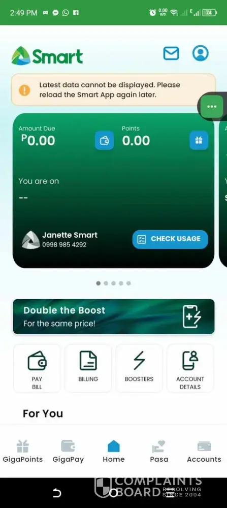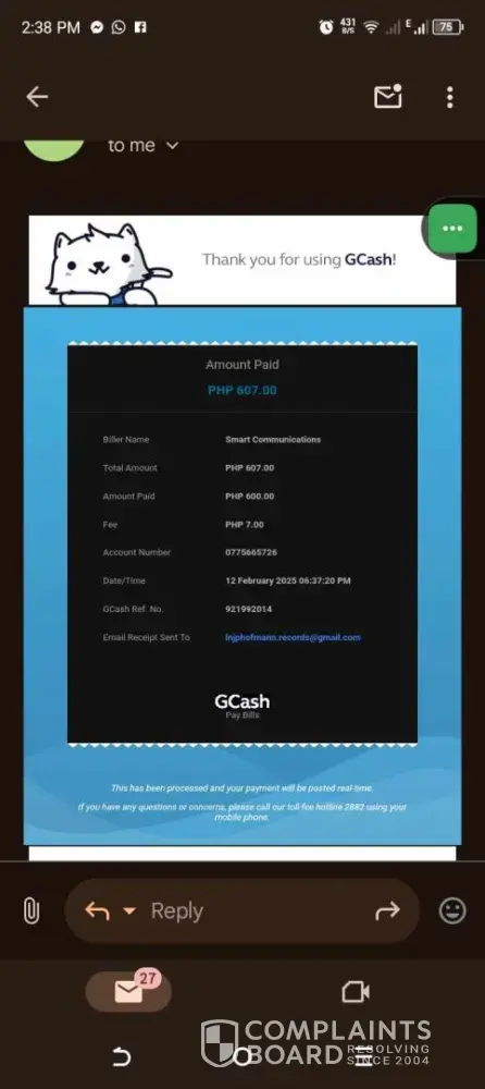 After buying load for my smart broadband home wifi, the transaction pushed through but the screen showed "We're working on it! This service will be back soon." All while deducting the amount from my GCash wallet.
