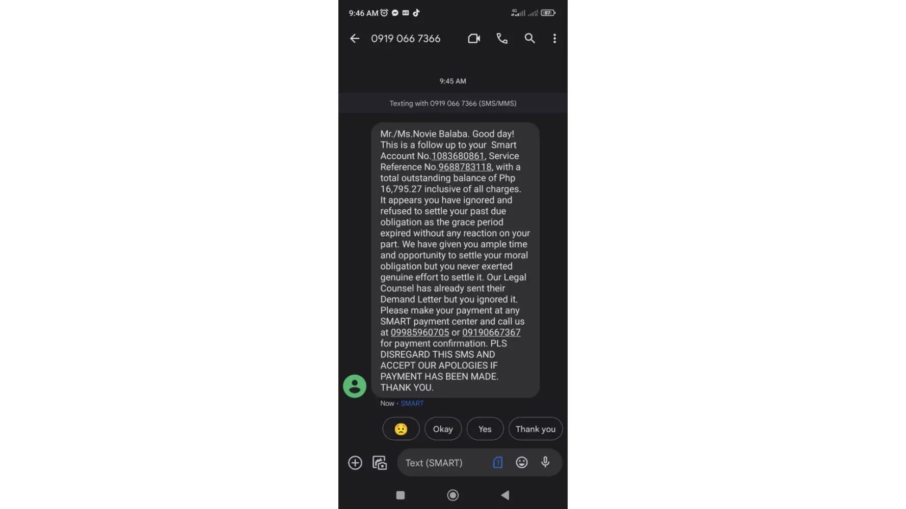 Last july 2022 may nag offer sa akin ng smart simcard sa gaisano - gingoog worth 100 pesos na convinced ako na mag avail kasi mura lang and maraming freebies hindi ko nga ginagamit yung simcard and as per sa nag benta sa aki ng sim okey lang daw na hindi gagamitin and also wala podaw akong babayaran na monthly kaya nagulat nalang ako mero akong unsettled billing amout 16,000.00 paano po nangyari? Eh hindi ko naman po ginamit yung simcard? At meron pang nag eemail sa akin taga law office grabe naman po alangan naman babayran ko yang 16,000.00 ehh hindi naman po ako naka benefits niyan...