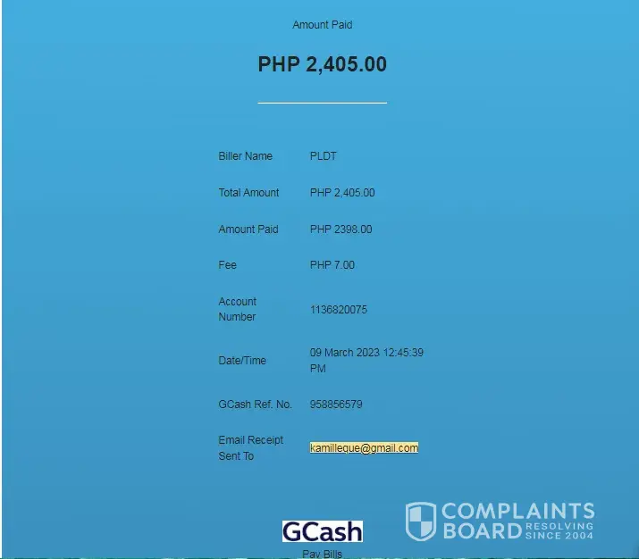 I hope this email finds you well. I am writing to seek assistance regarding an issue I encountered while making a bill payment transaction through GCash.