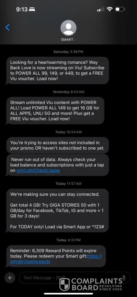 I received a suspicious message that appears to have come from your official load update sender. The message reads: Reminder: 6,309 Reward Points will expire today. Please redeem your Smart gift: https://smratrl.top/rewards This is clearly a phishing attempt, yet it came from the same thread that normally sends my legitimate Smart updates. This could easily...