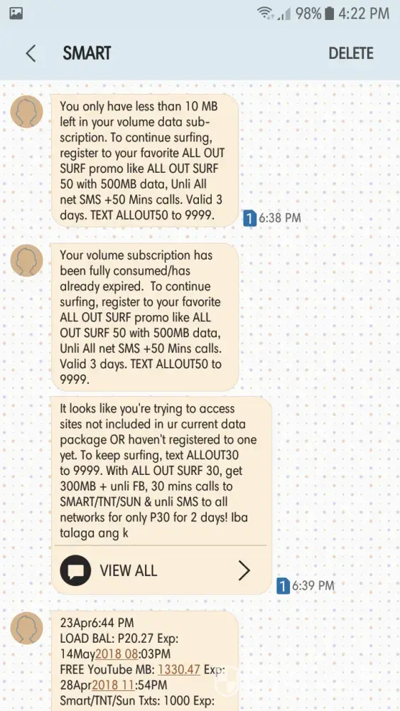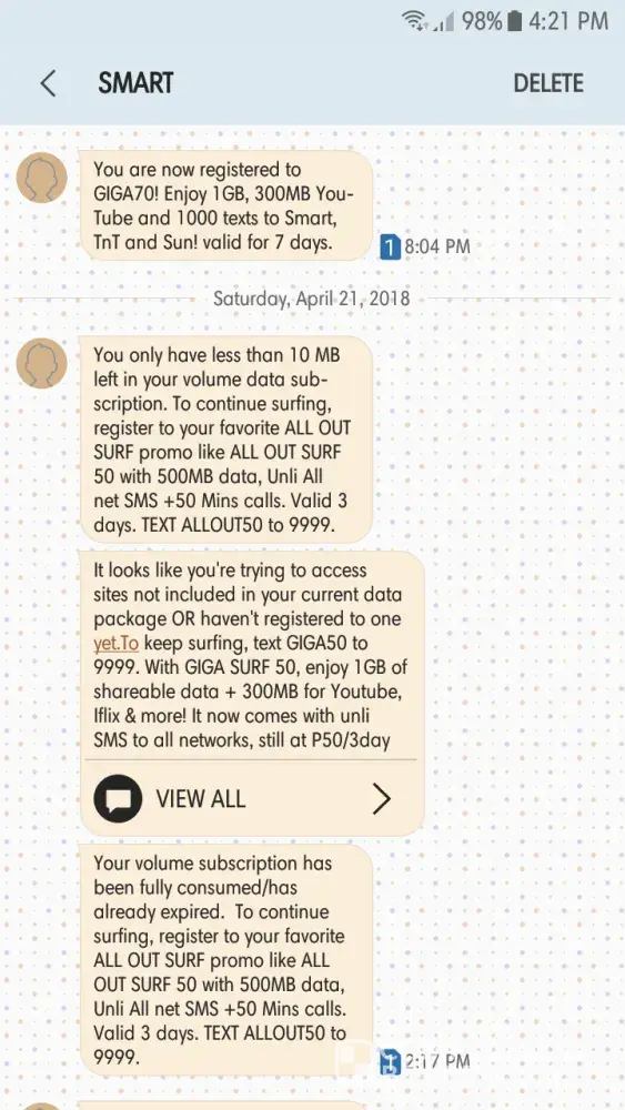 How come that I register giga70 with 1GB mobile data with 300mb youtube and 1000 text to all network. That cant be used to open other apps that used data. Then a minutes later u text me I have 10mb less wow smart! U scam all people with ur promo then when I check the balance I have a 1329.89mb why I cant used all of that even in facebook. Ur signal gets poor when I open some apps. Its so useless that I cant use it. I spend a money for nothing. Ur scammer.