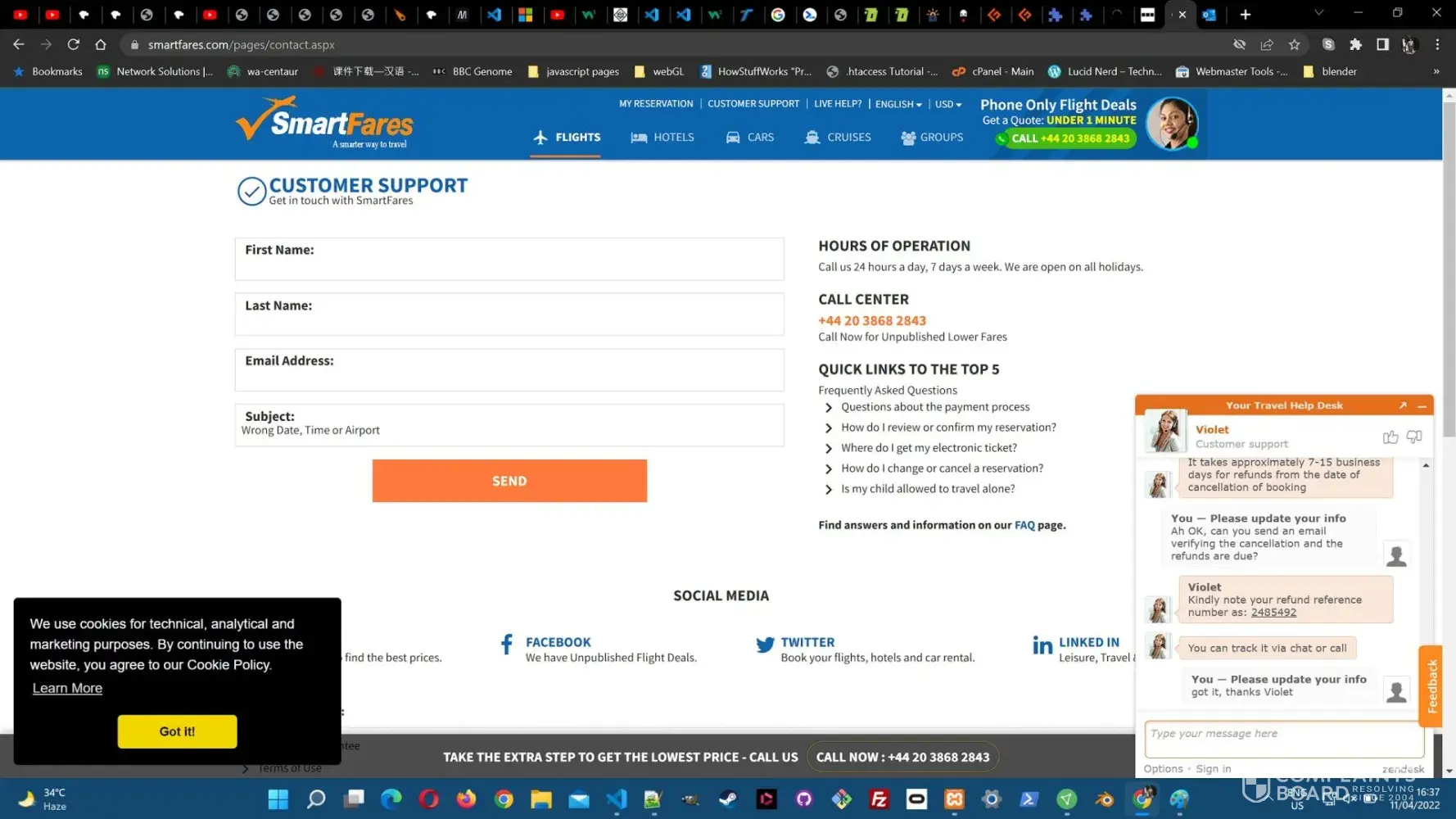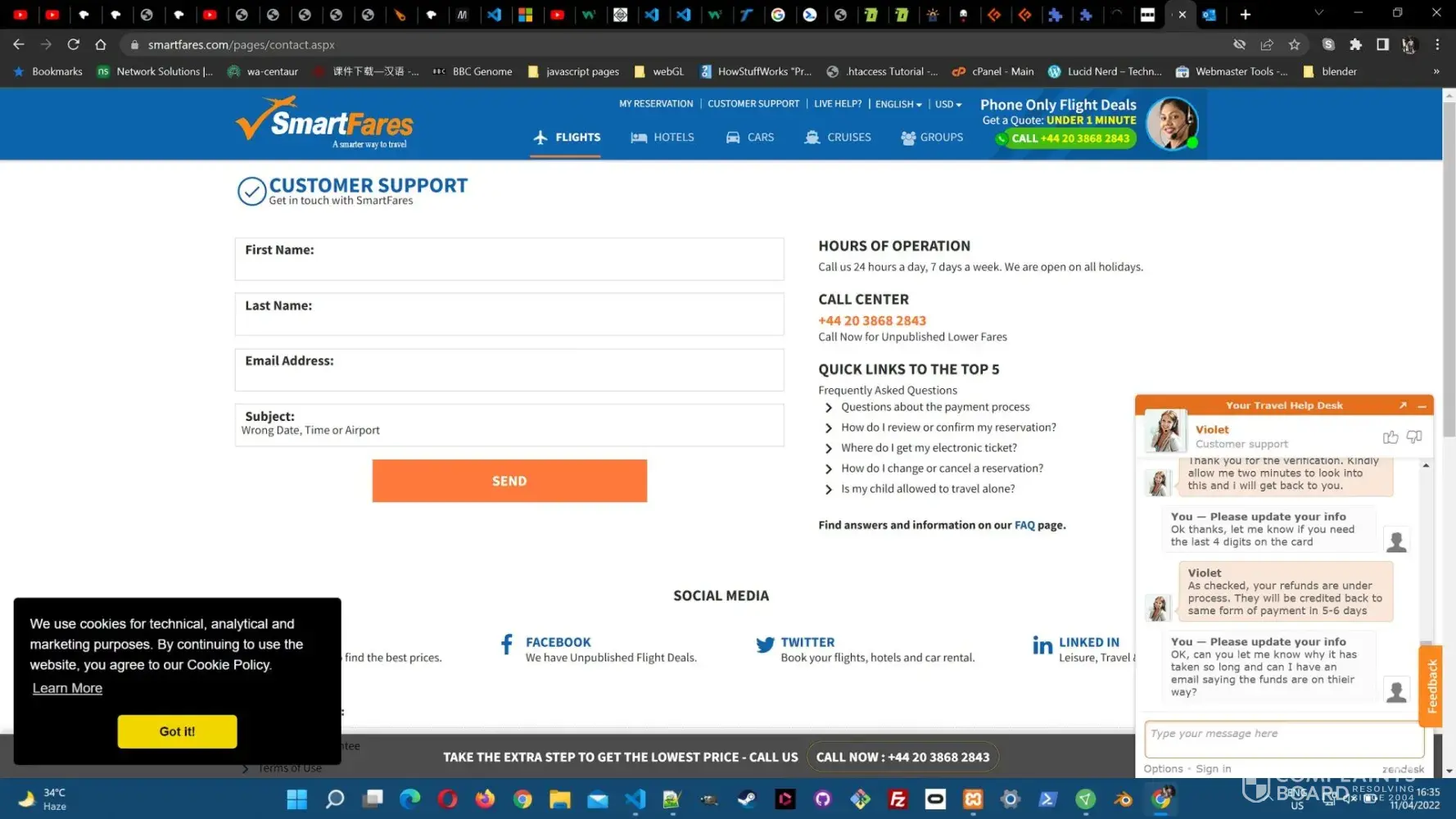 - We found clear and detailed contact information for SmartFares.com. The company provides a physical address, 2 phone numbers, and email, as well as 3 social media accounts. This demonstrates a commitment to customer service and transparency, which is a positive sign for building trust with customers.