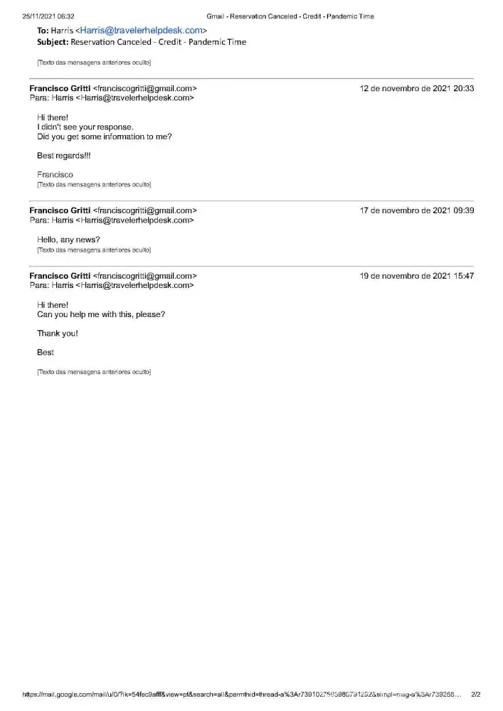 2. Refund request via email